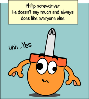Philip – skruvmejseln är kanske den smartaste av gänget men är tystlåten, utan egen vilja. Gör alltid samma sak som de andra i familjen jönssson.