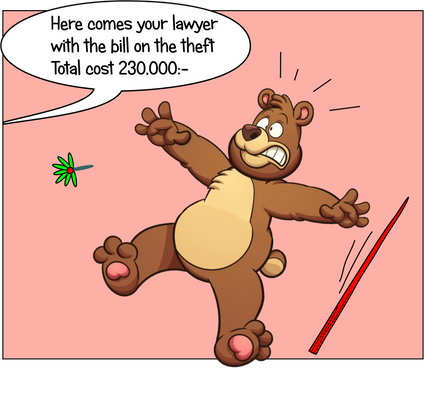 För att reda ut röran Jönssssonligan ställde till med fick björn betala en stor summa till sina advokater. Genom olika trix brukar han i sagans värld lyckas undvika rättsliga åtgärder.